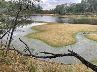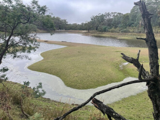 Still pond approx 50m upstream from usual sampling spot at the reservoir. The reservoir has pretty much dried out (only a few puddles left) but very muddy and slippery and access to these pools is nearly impossible |